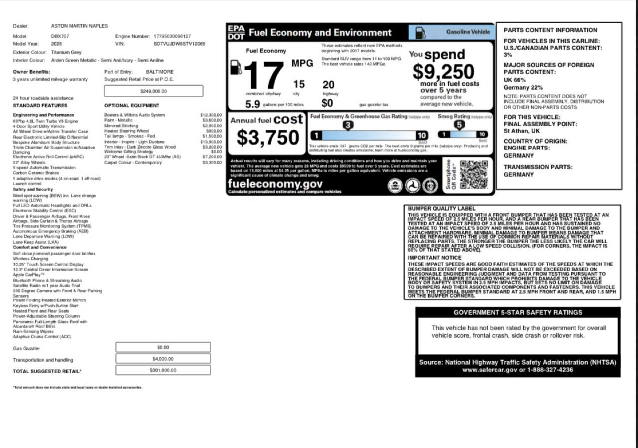 4.0L Twin Turbocharged V8 engine rated at 697HP